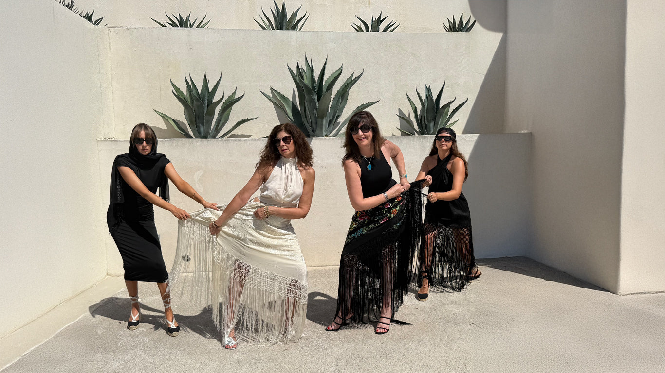 Every piece is a wink to where it all began--our grandmother's sewing tables, our mothers' mantones (Spanish silk shawl) and mantillas (Spanish lace veil), the artistry passed down through generations of women who crafted couture from what they had.